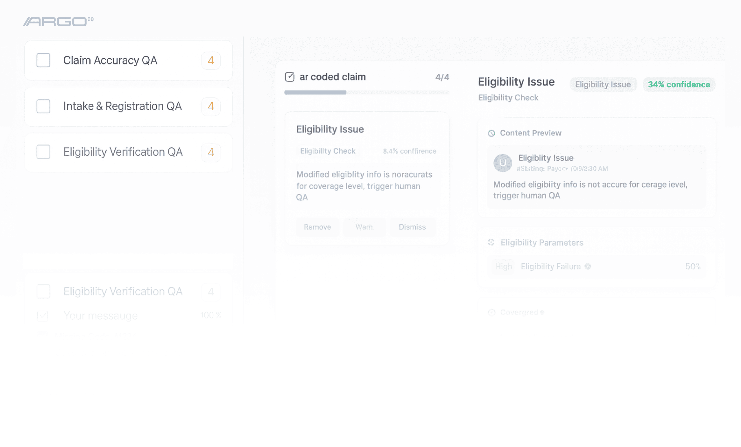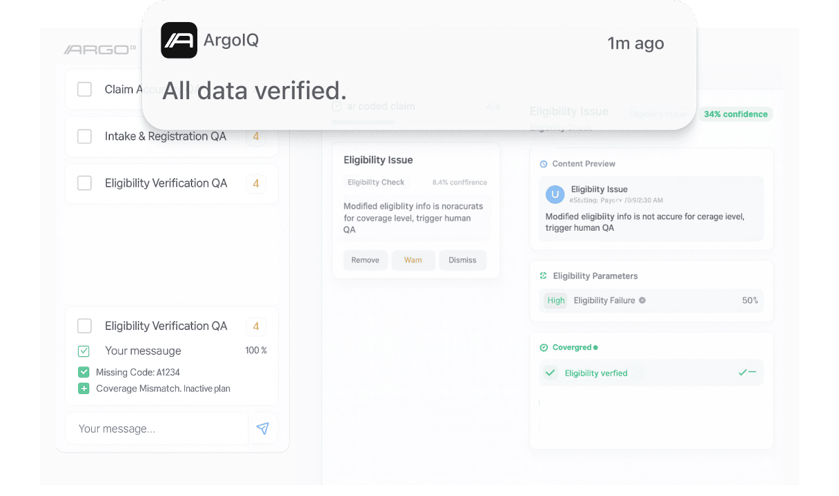 The control layer that verifies, monitors, and maintains the accuracy of AI-driven billing, eligibility, and intake workflows. Trusted by ops leaders where accuracy is revenue.
